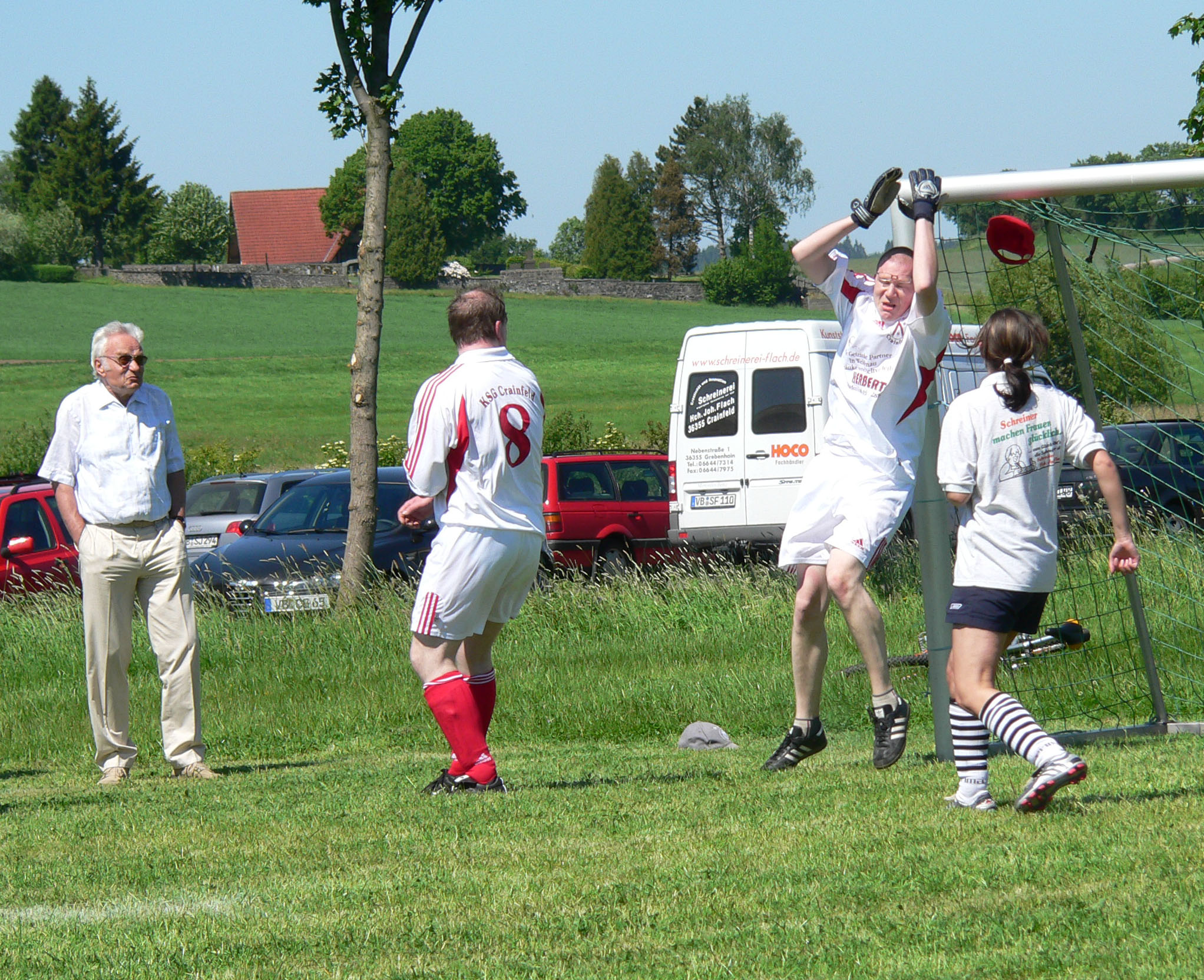 PS: Ein kleiner Schwenk in die Vergangenheit. Das Bild zeigt des Pfarrers Rettungstat per Gesicht beim Crainfelder-Kicker-Kirche-Tunier…